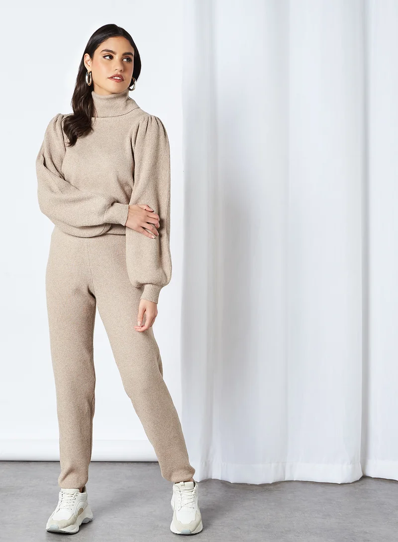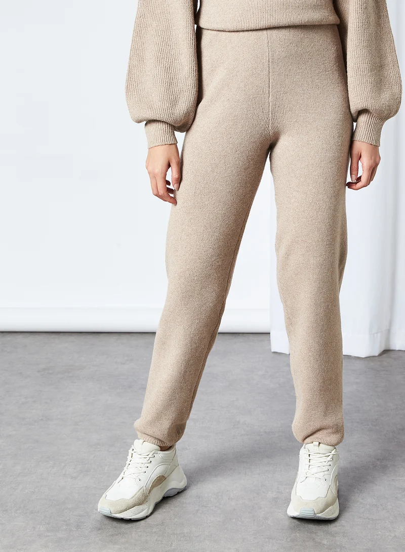 High Waist Knit Pants Natural