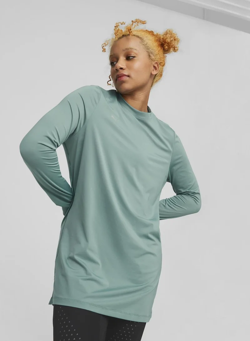 This long sleeve workout top is made specifically to fit the modest athlete and to allow them to push to their limits.