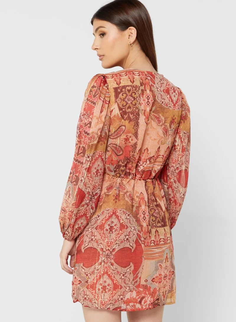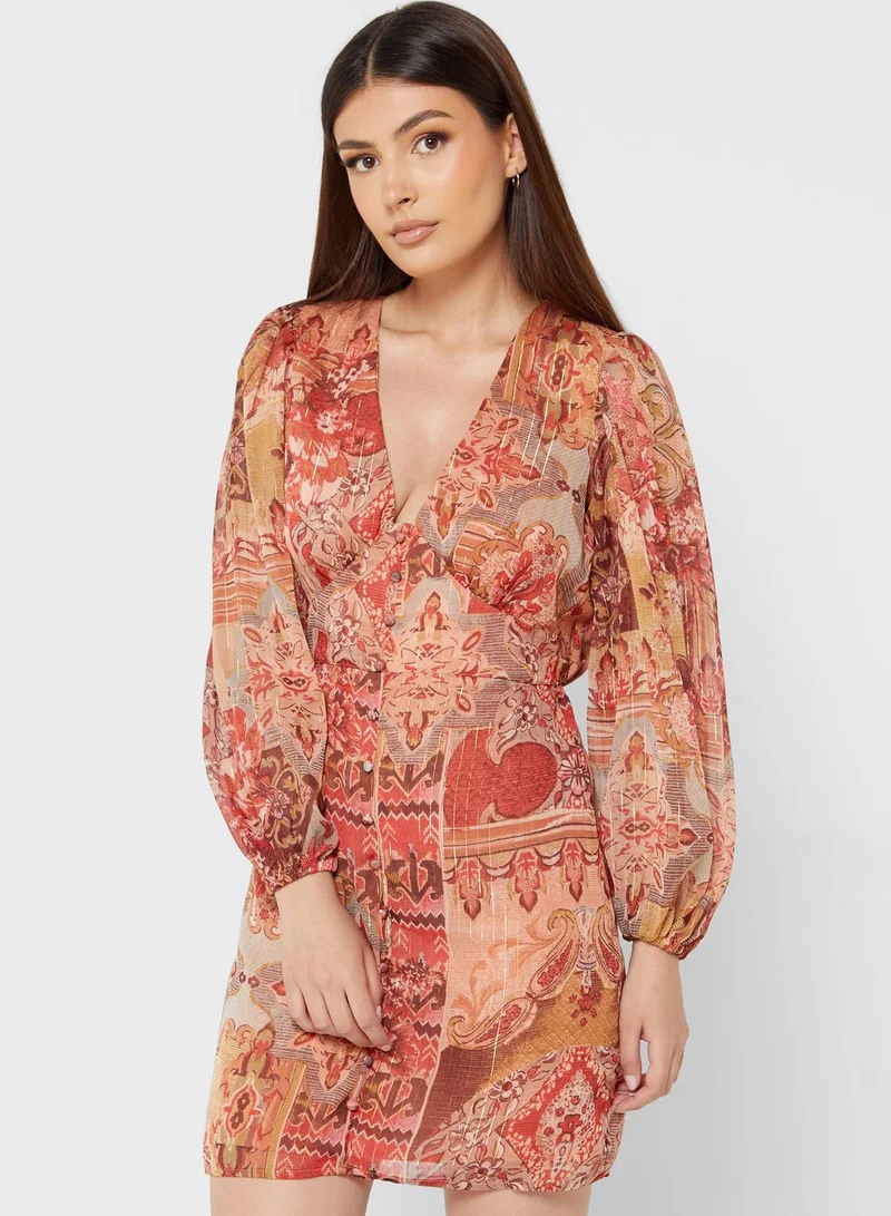 RIVER ISLAND Balloon Sleeve Printed Button Detail Dress