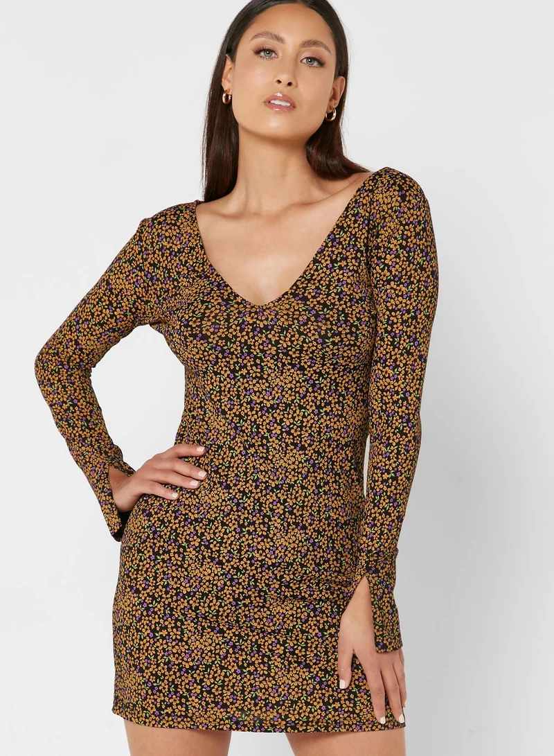 RIVER ISLAND V-Neck Tie Detail Printed Dress