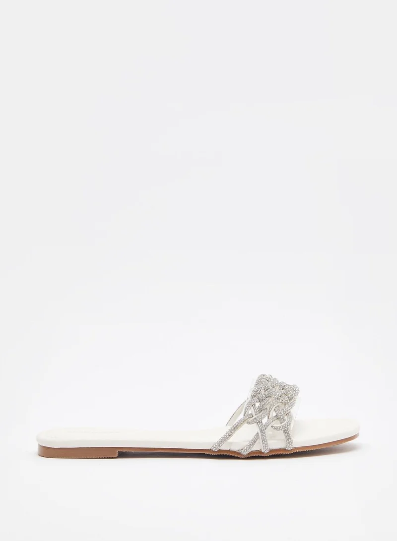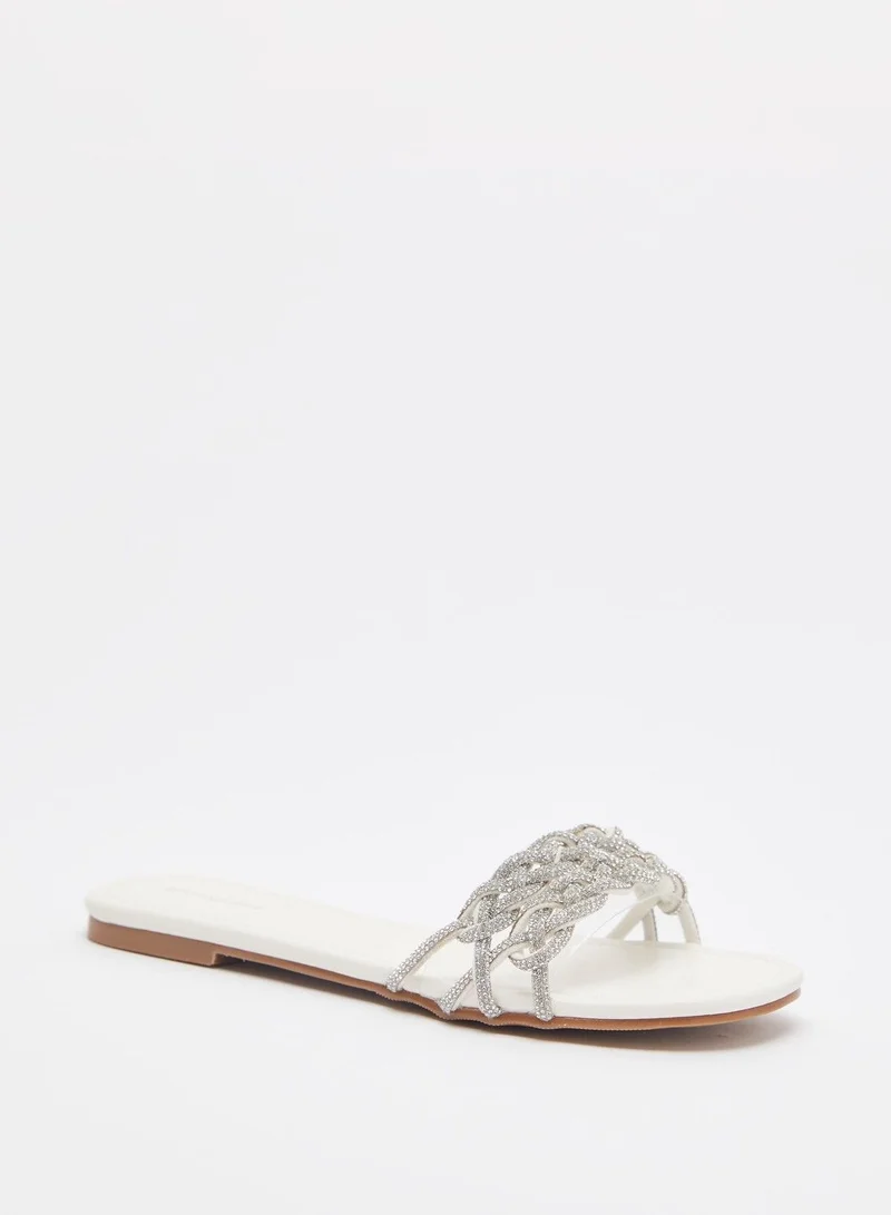 • A classy pair to amp up your footwear collection, this pair of sandals comes with a spectacularly fashioned vamp with embellishments and braided detail.