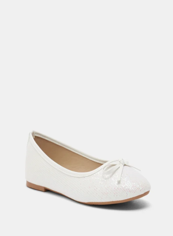 shoexpress Girls Glitter Textured Bow Accent Ballerina White
