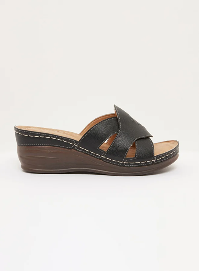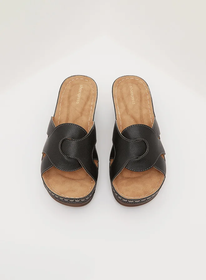 shoexpress Slip-On Closure PU-Polyurethane Flat Sandals Black