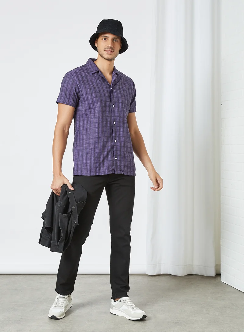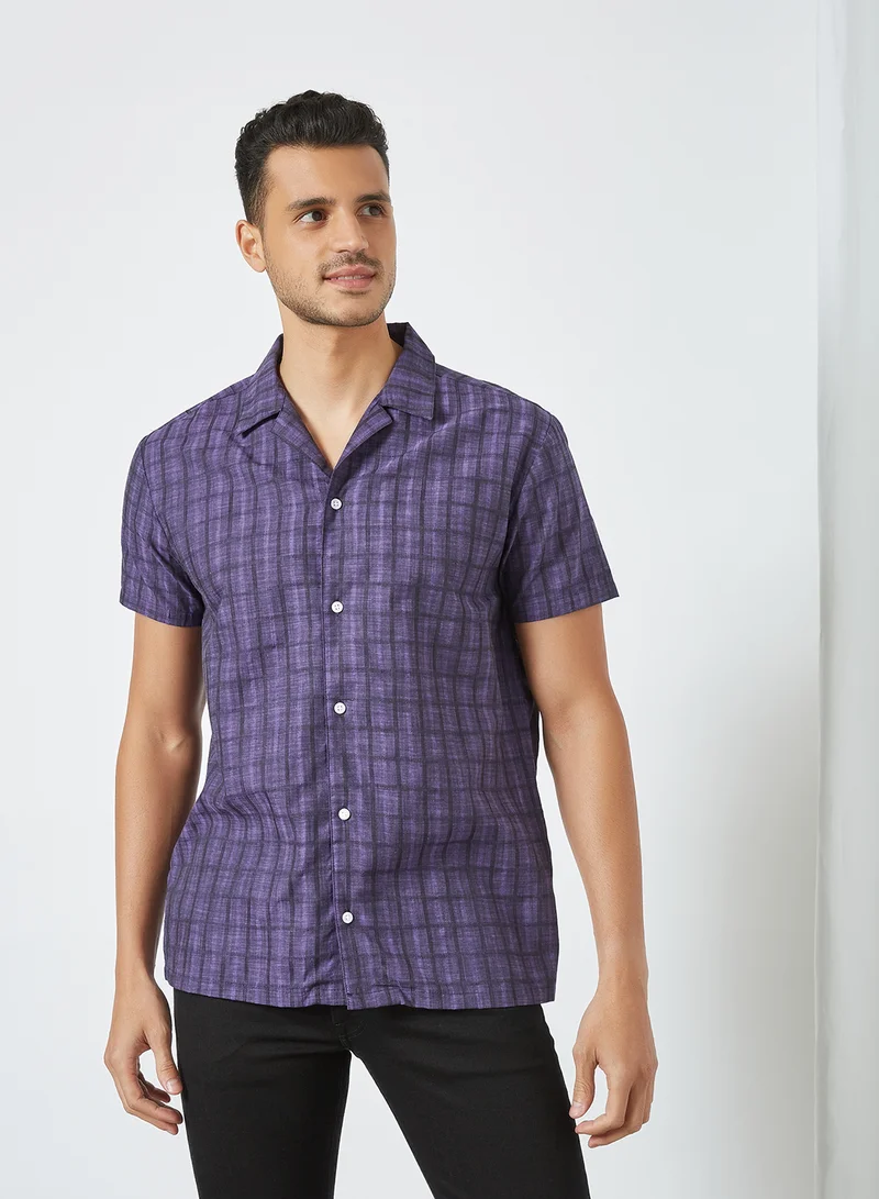 Short Sleeve Dobby Check Shirt Purple