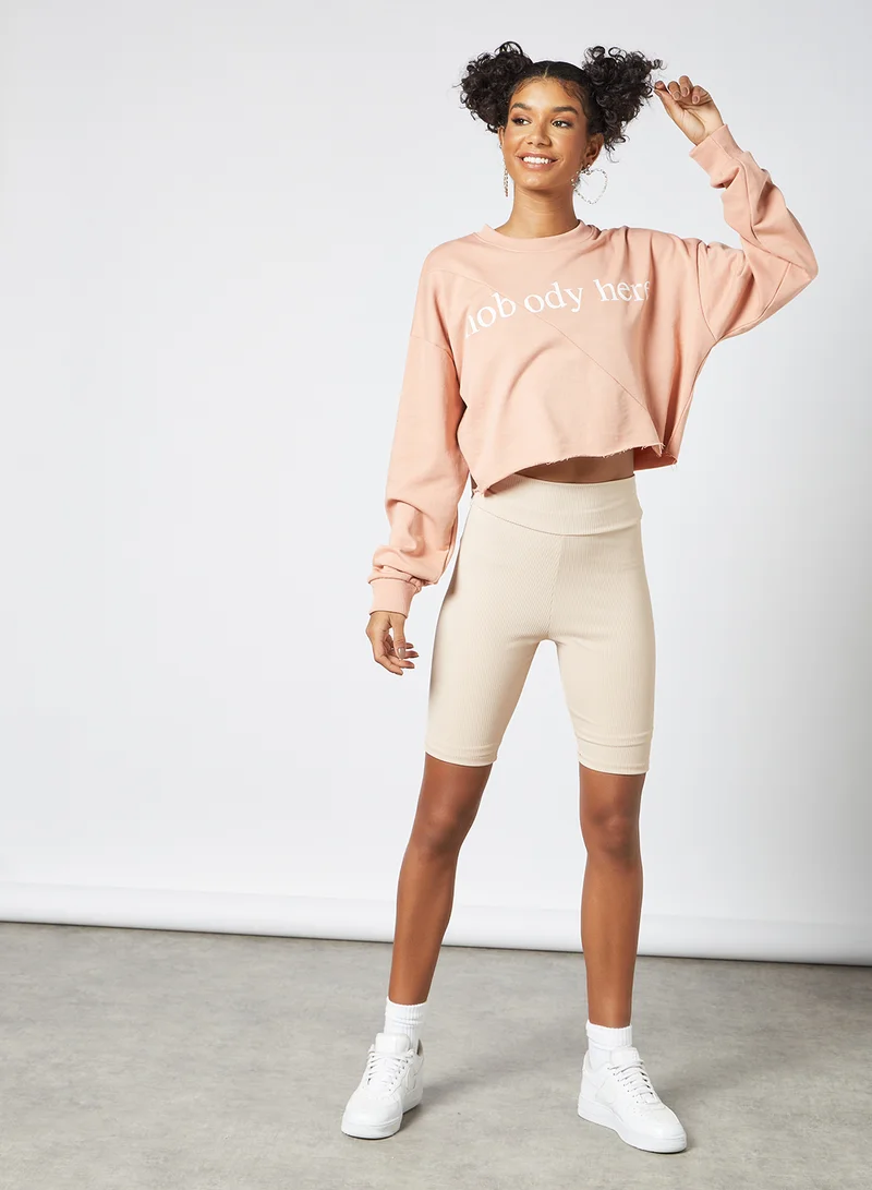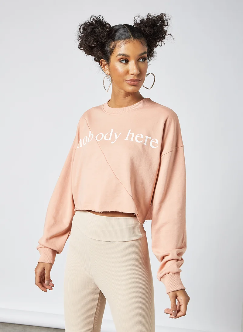 Slogan Cropped Sweatshirt Pink