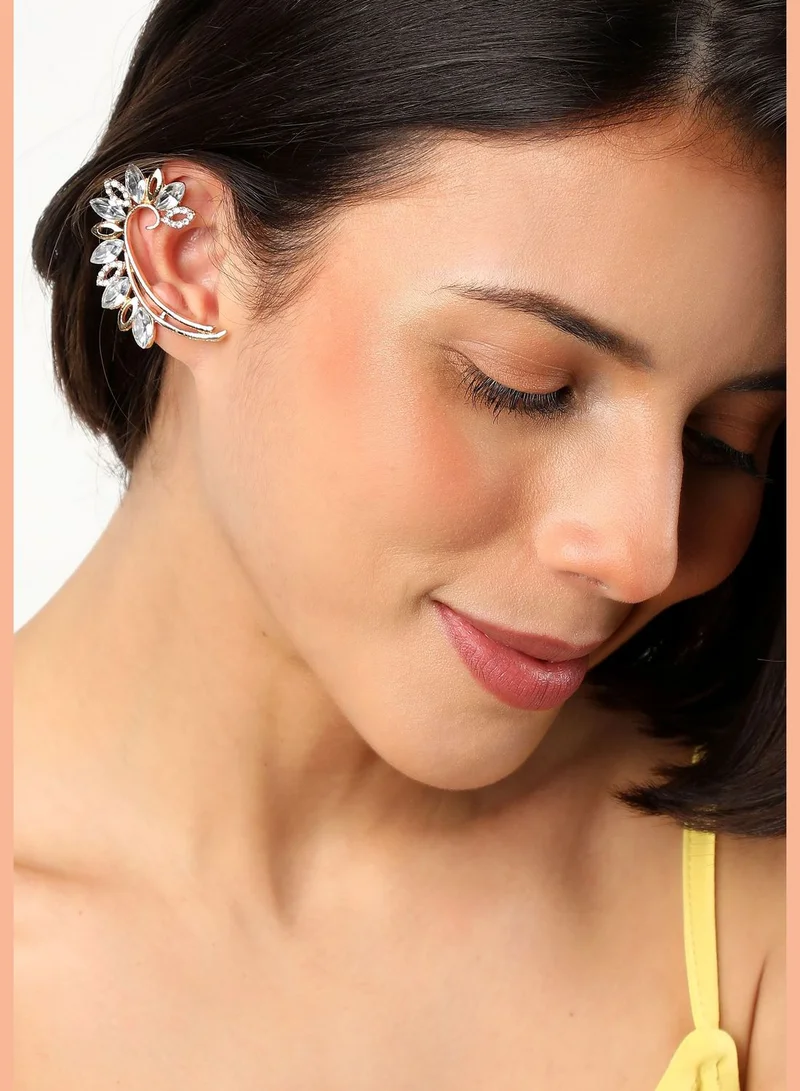 SOHI Gold Plated Cuff Earrings for women. Earrings are a great accessory for many different occasions. You can go for a more understated look or choose a style that is more grandiose. It really depends on what you are looking for and what will complement your outfit the best. Keep in mind that some earrings can be quite delicate, so it is important to take care of them and avoid exposure to harsh chemicals or perfume. Store your jewellery in an air-tight container or in a zip lock pouch. We recommend putting your jewellery on last, and only after you've applied makeup, perfume, or any chemicals - all of which can affect the quality of your jewellery. Use a dry and soft cloth to wipe away any marks that might have been made on your product after wearing it. Sohi is not responsible for any damage caused to your product through misuse or improper handling. All of our jewelry is export quality and anti-allergic. Gold-plated jewelry is a great way to add a touch of class to any outfit. Our jewelry is made with top-quality materials and plated with copper alloy to ensure that it is durable and long-lasting. Our product is light weight and can be worn every day as a fashion statement. It is also Hypoallergenic and can be worn by people with sensitive skin. At Sohi, we specialize in creating beautiful jewelry that complements your already radiant personality and reflects your unique style. Our exquisite collections include contemporary and classic pieces of jewelry, as well as trendy designs that can be combined with other accessories to match any outfit you choose.