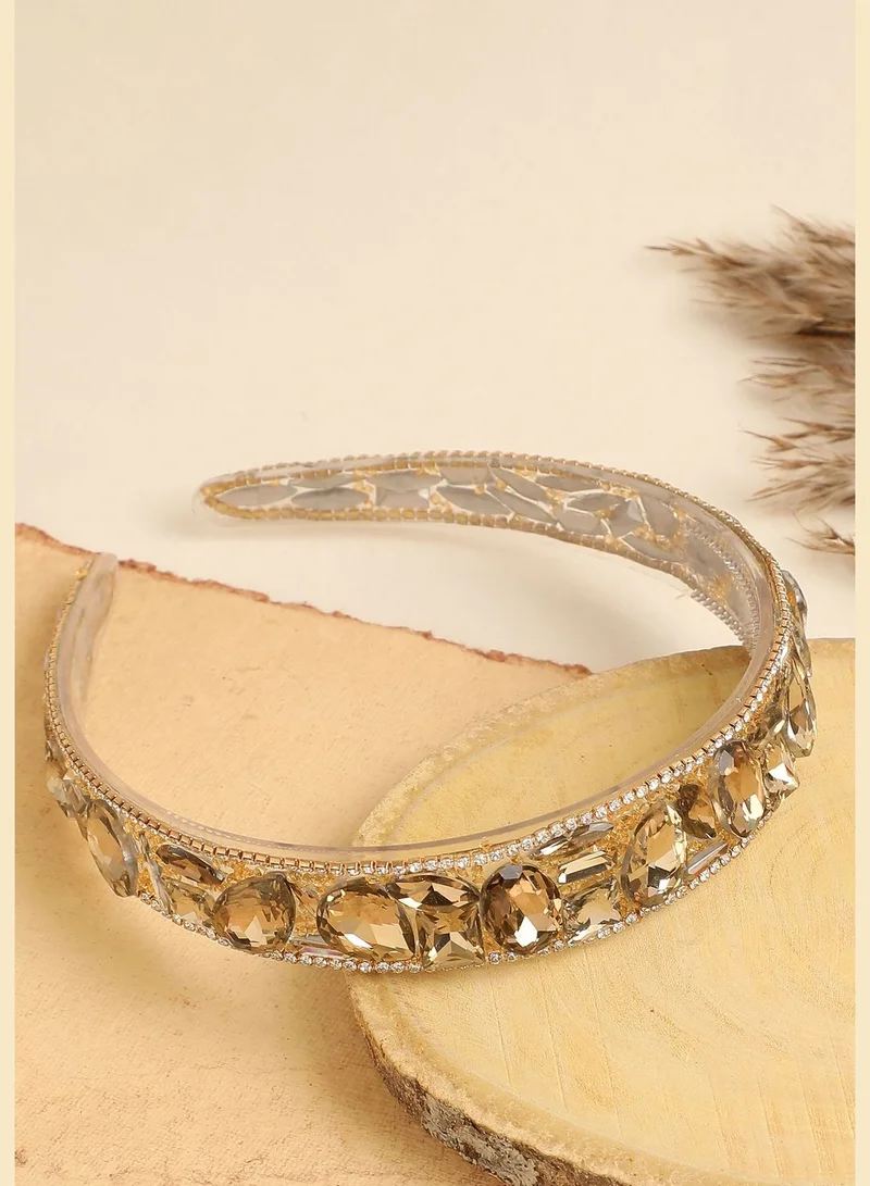 SOHI Gold Plated Designer Stone Hair Band