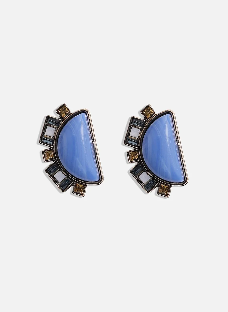 Half Stone Artificial Stud Earring Jewellery