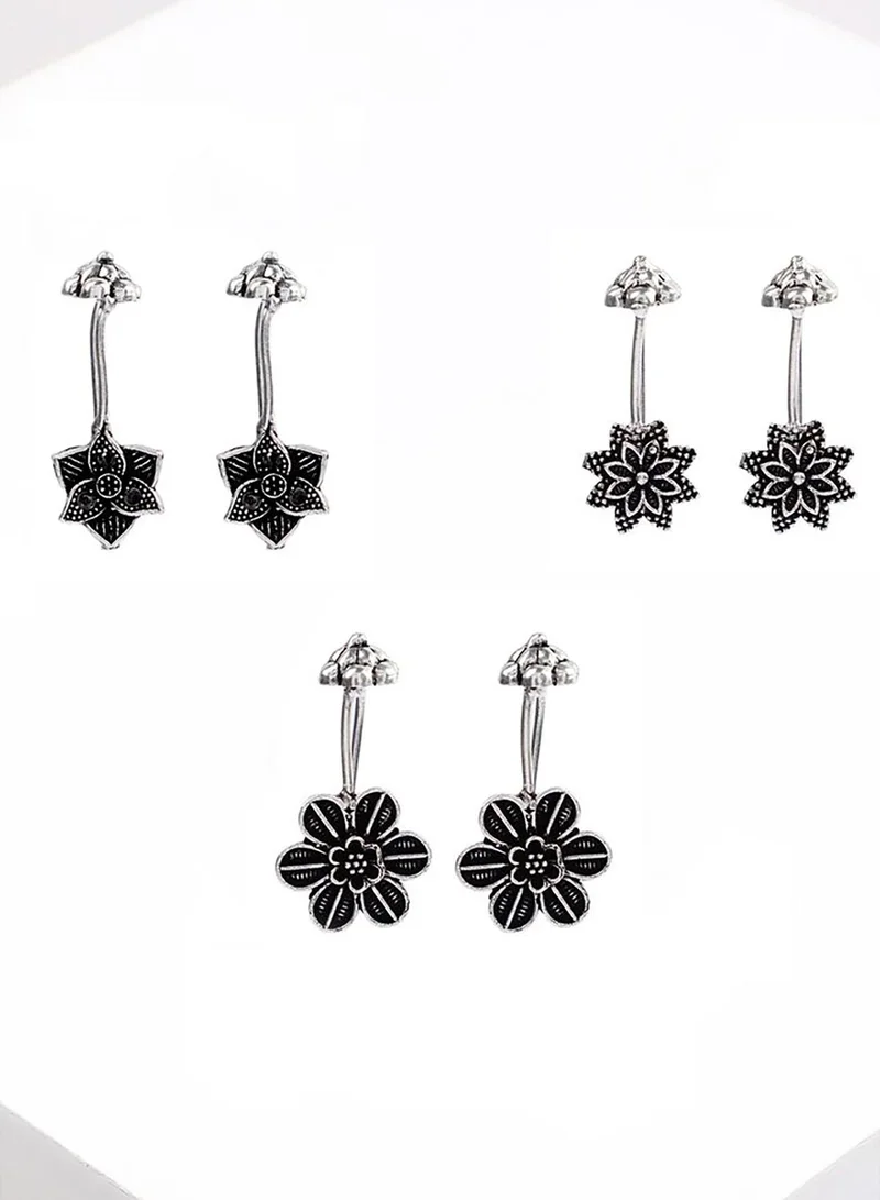 SOHI Pack of 3 Floral Designer Drop Earrings