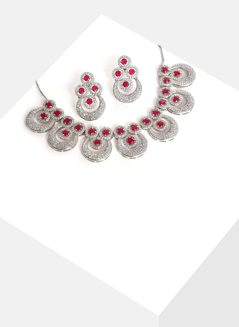 SOHI Silver Plated Designer Stone Necklace and Earring Set