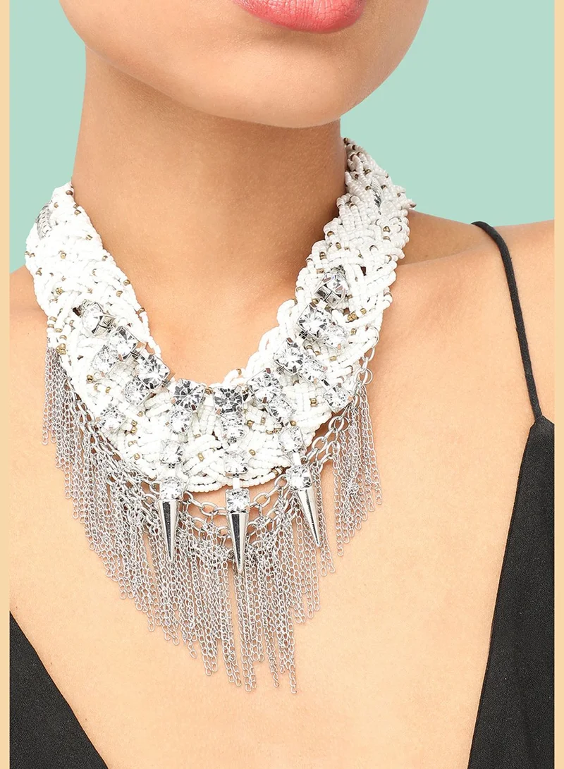 Silver Plated Party Designer Stone Statement Necklace For Women