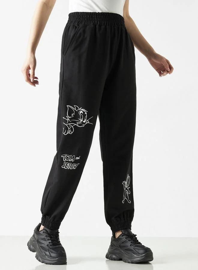 SP Characters Tom and Jerry Print Joggers with Elasticated Waistband and Pockets