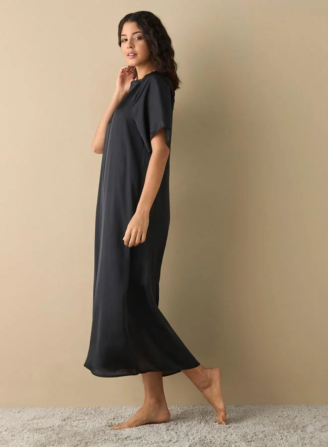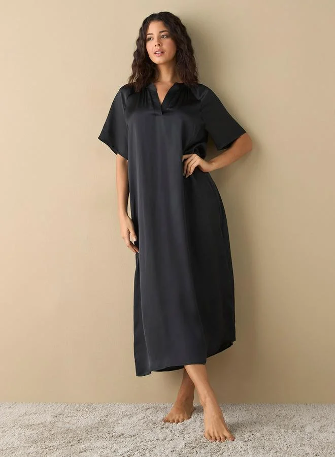 Splash FAV Night Dress with Mandarin Neck and Short Sleeves