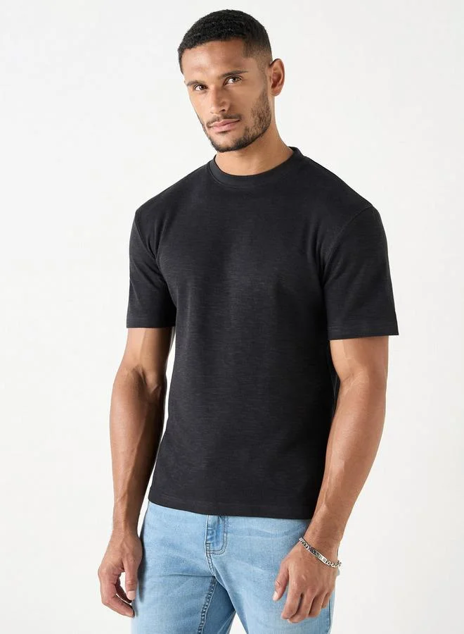 Splash FAV Textured T-shirt with Crew Neck and Short Sleeves