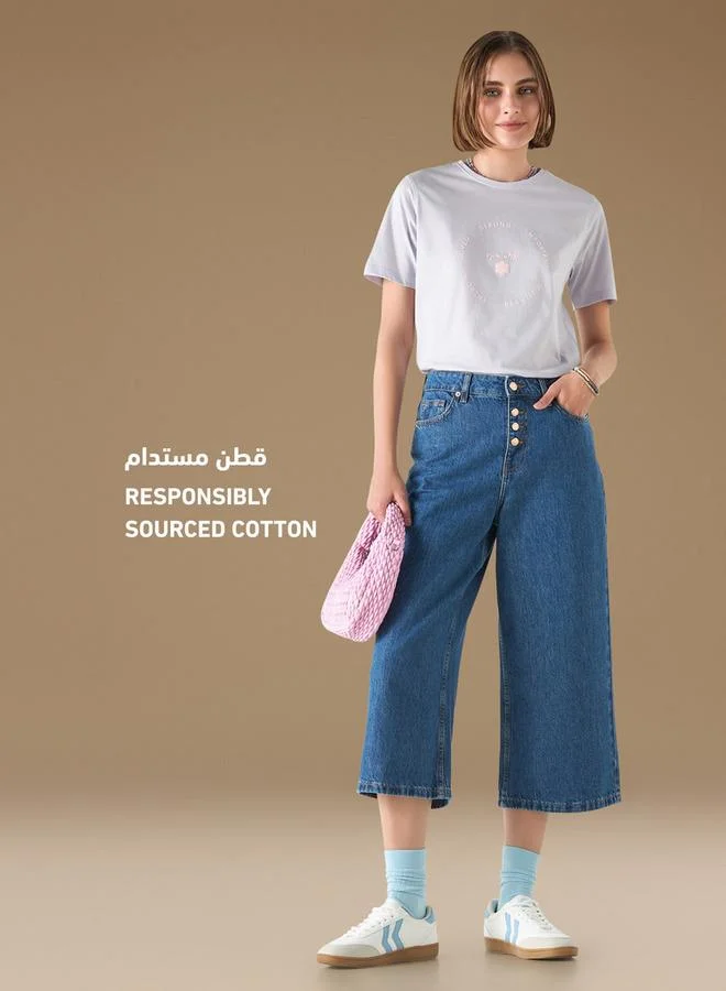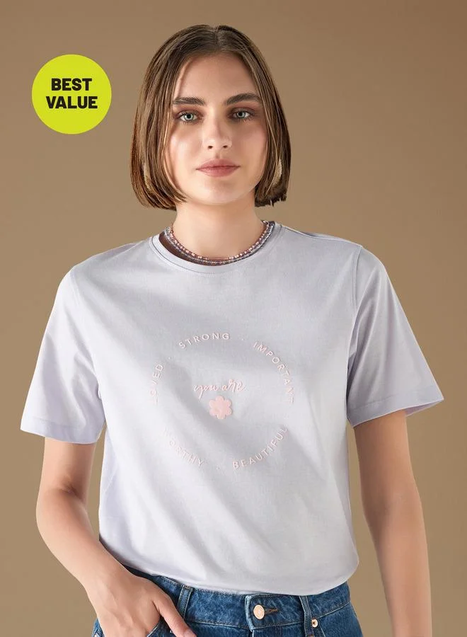Typographic Print Crew Neck T-shirt with Short Sleeves