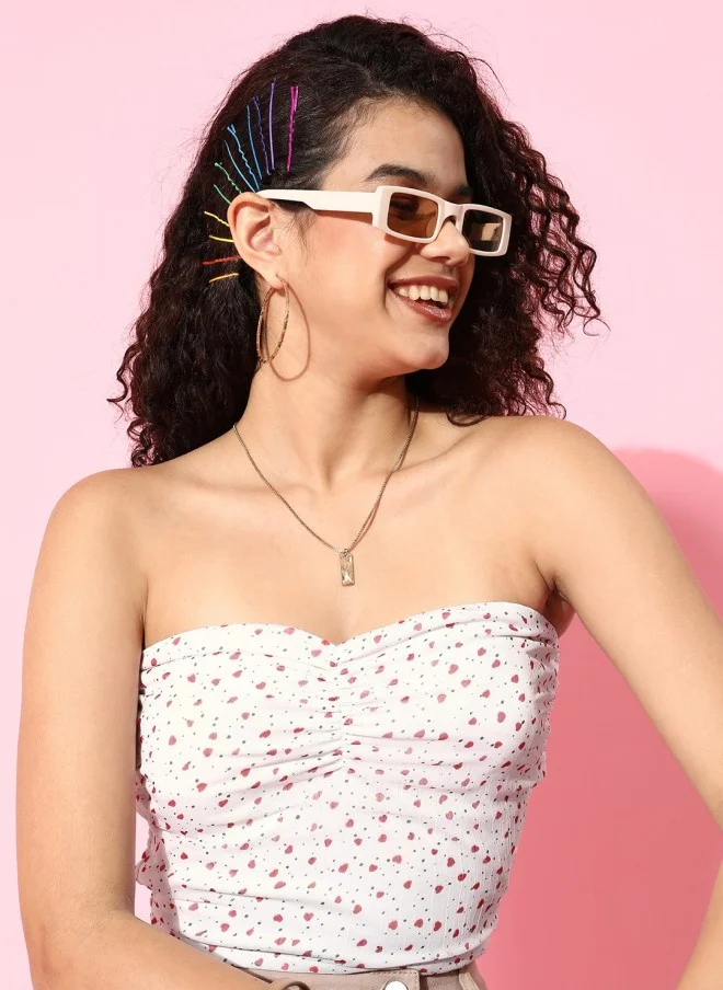 This stylish off-shoulder crop top from STREET 9 is perfect for casual outings. Made from lightweight woven chiffon, it features a vibrant white base adorned with a playful red graphic print. The gathered detailing adds a touch of elegance, while the sleeveless design keeps it cool and comfortable for warm weather. With a concealed zip closure, this top ensures a secure fit. Ideal for pairing with high-waisted skirts or shorts, it’s a versatile addition to any wardrobe, perfect for day-time meetings or casual gatherings.
