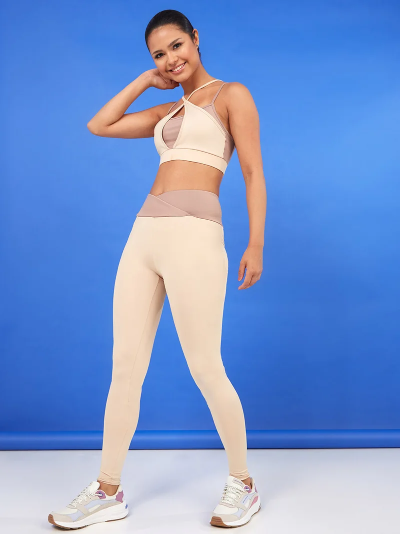 Styli Active Contrast Layered Multi Strap Sports Bra and Leggings Active Set