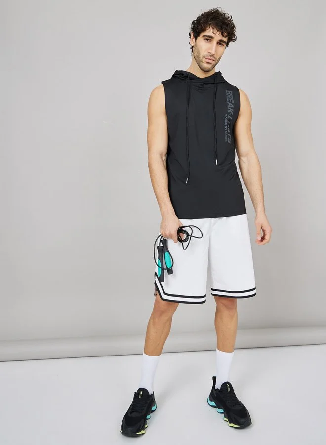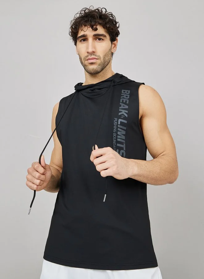 Styli Active Slogan Tonal Print Sleeveless Hooded T-shirt