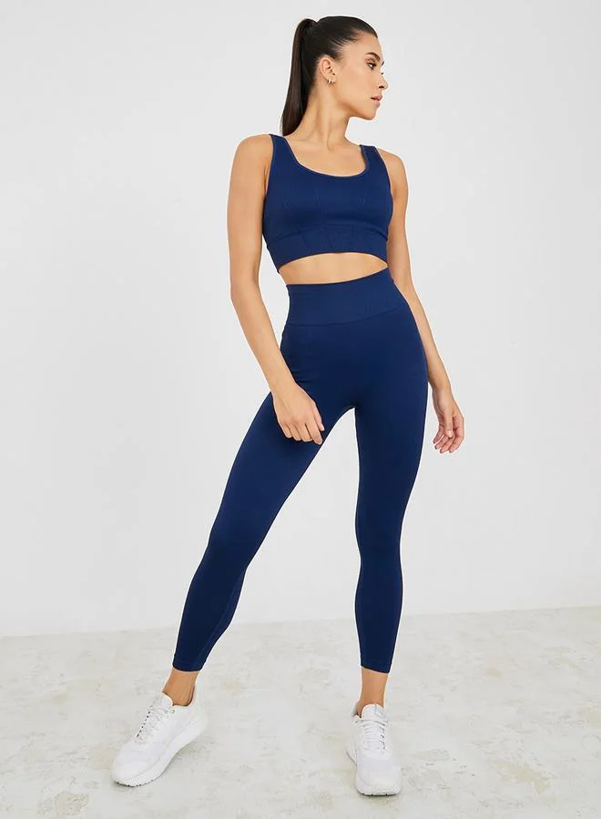 Styli Active Stitch Detail Ribbed Sports Bra and Contoured Back Leggings Set
