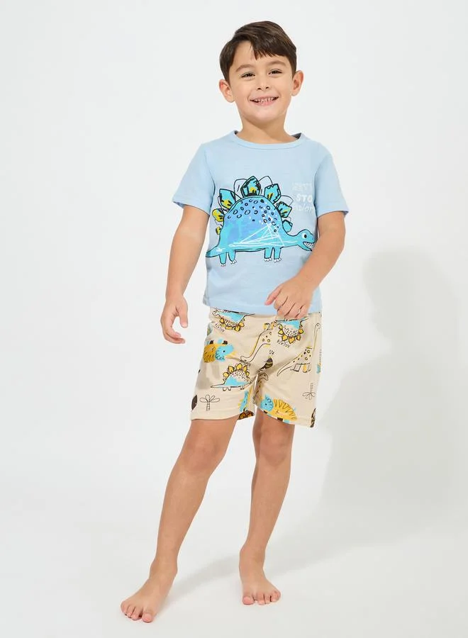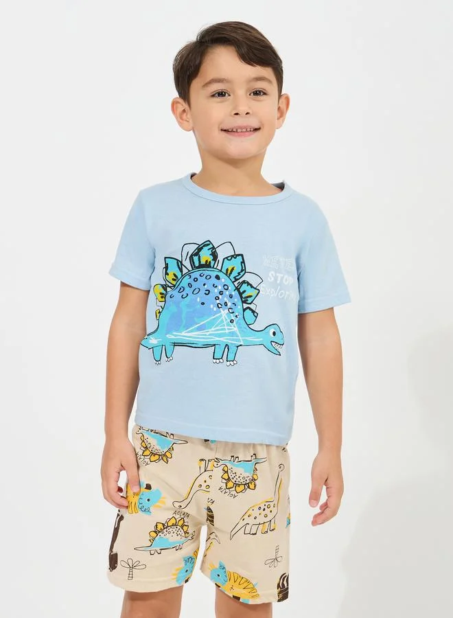 Styli Dinosaur Print Cotton T-Shirt & Shorts Set