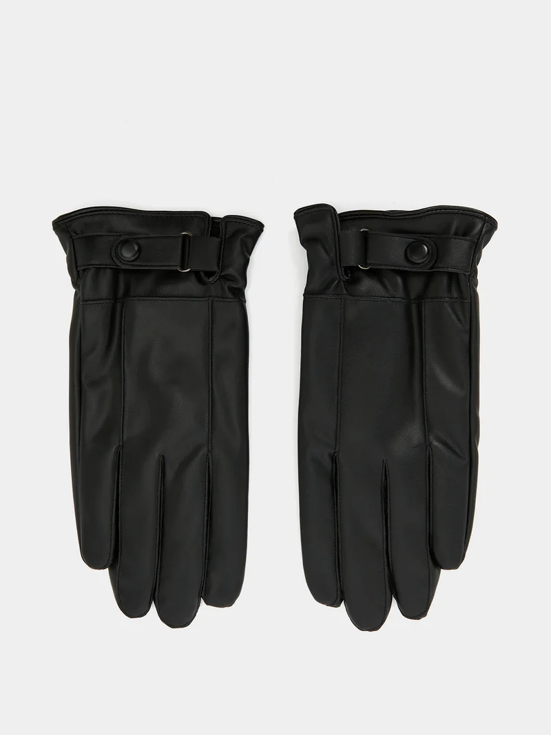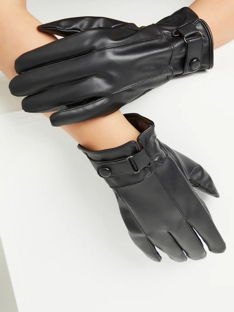 Styli Faux Leather Winter Gloves with Wrist Strap
