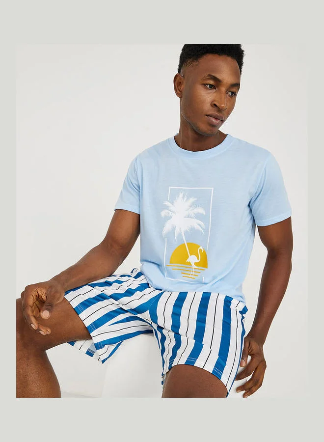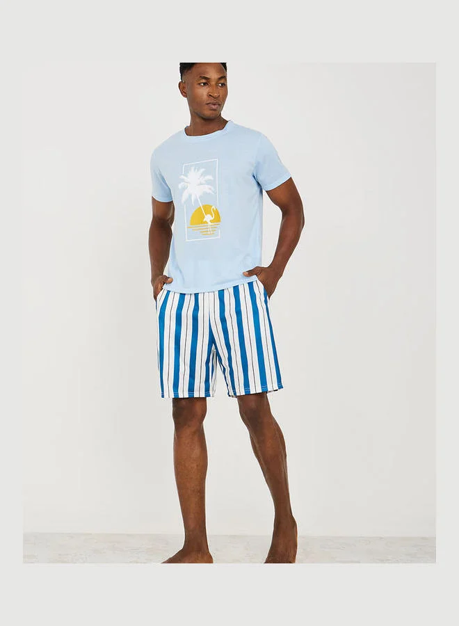 Styli Front Graphic T-shirt and Striped Shorts Set
