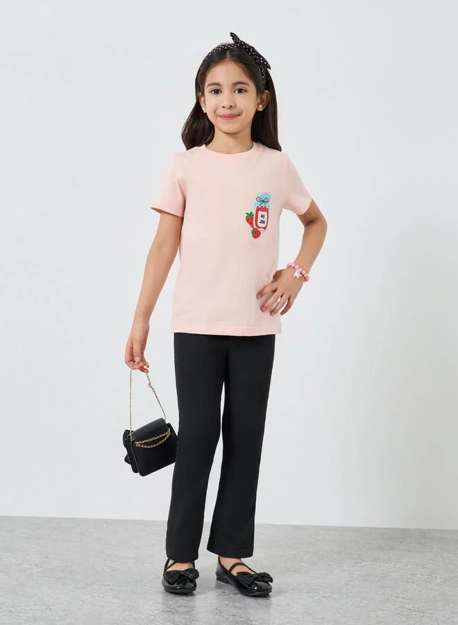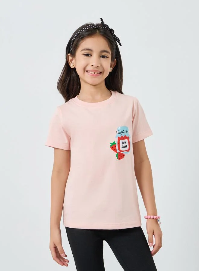 Styli Girls Pink Graphic Print Cotton T-Shirt