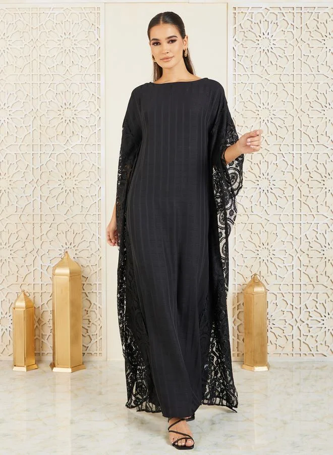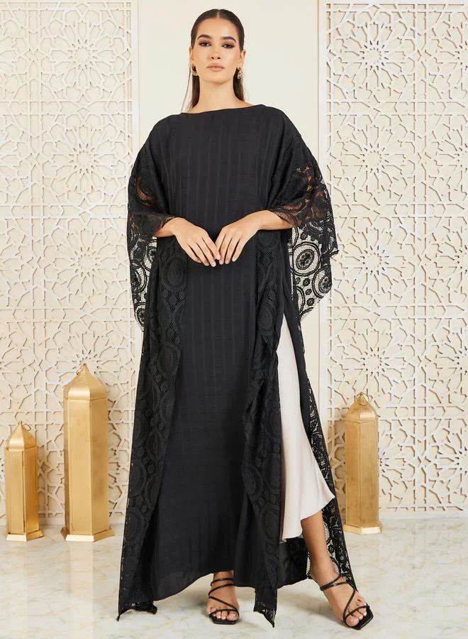 Styli Lace Cape Detail Striped Kaftan