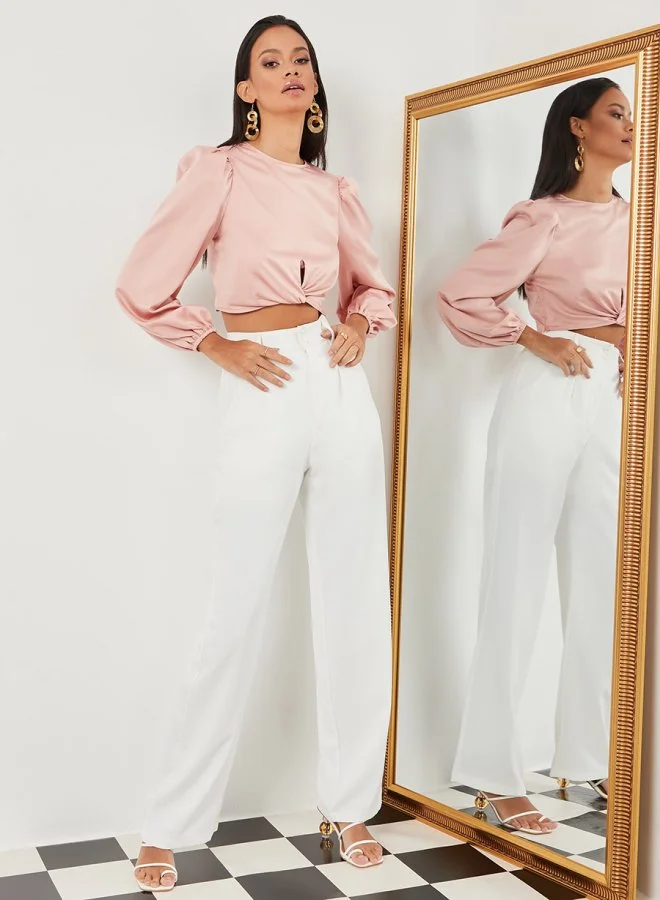 Styli Long Sleeves Round Neck Front Twist Blouse