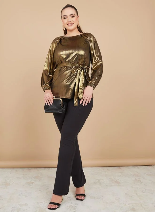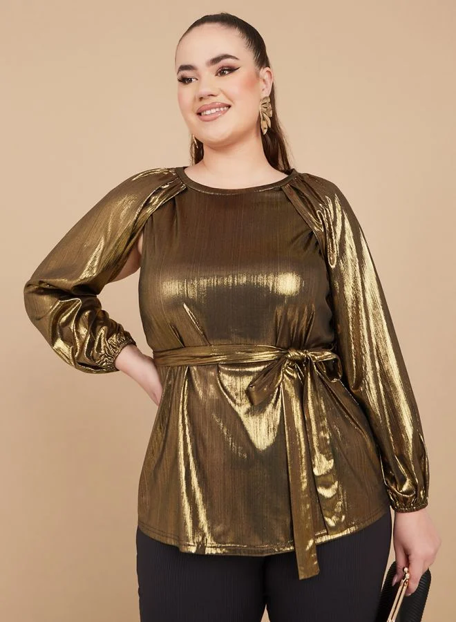 Styli Mettalic Self Tie Blouse