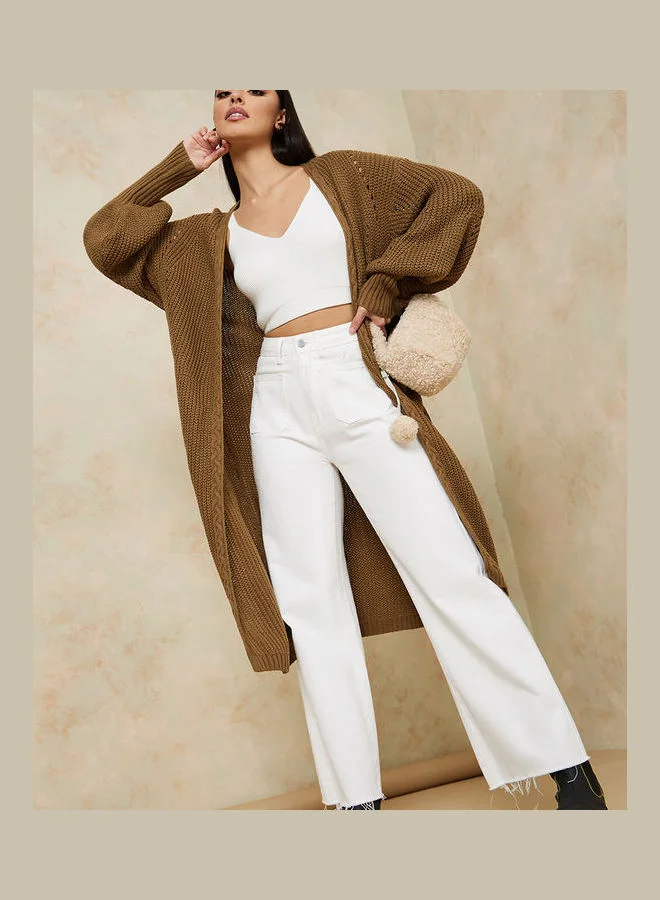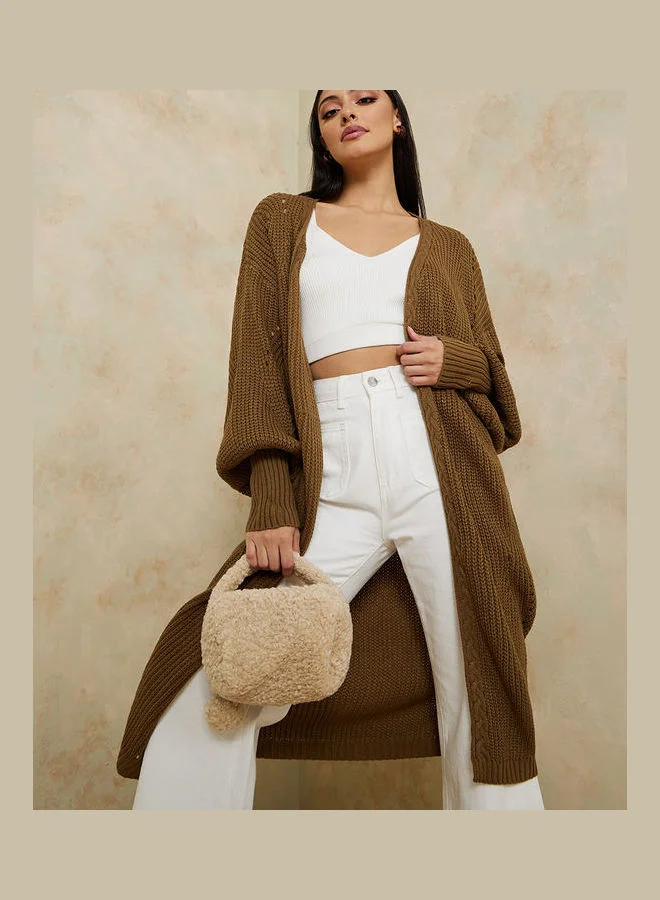 Styli Midi Length Textured Cardigan with Volume Sleeves