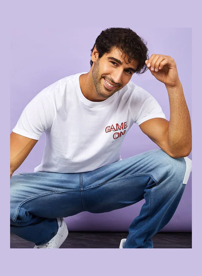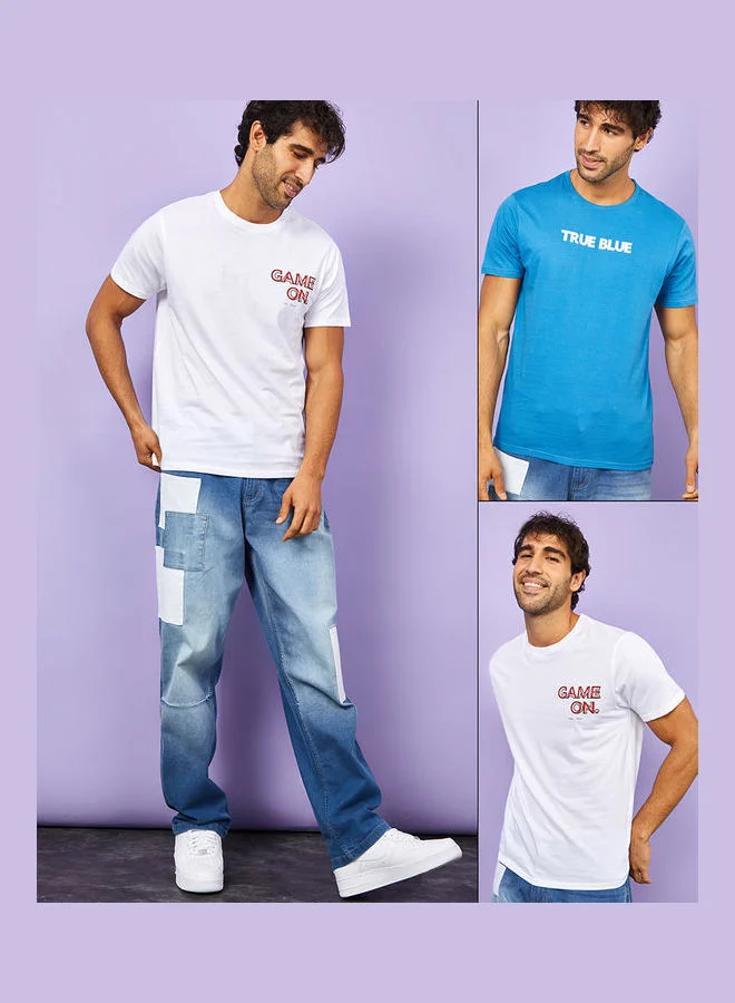 Styli Pack of 2 - Slogan Print Cotton Regular Fit T-shirt
