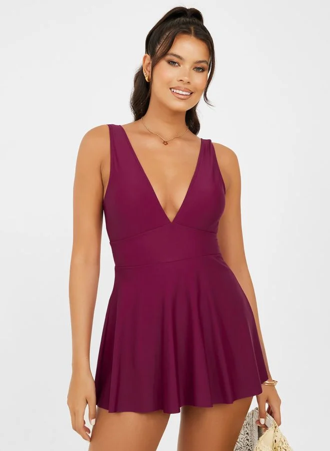 Plunge Neck Skirted Swimsuit