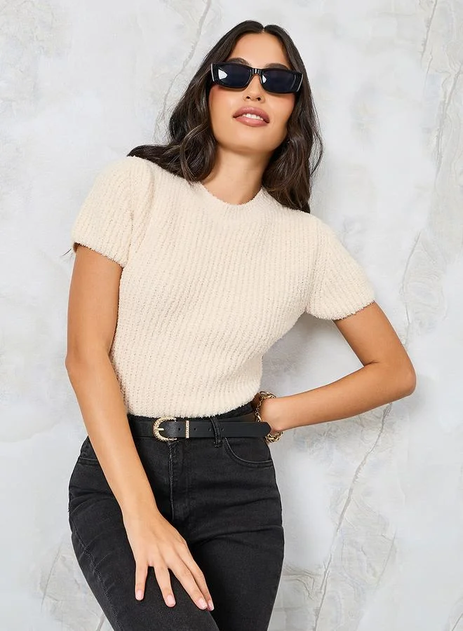 Styli Regular Fit Textured Knit Top with Short Sleeve
