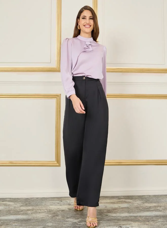 Styli Satin Frill Detail High Neck Blouse