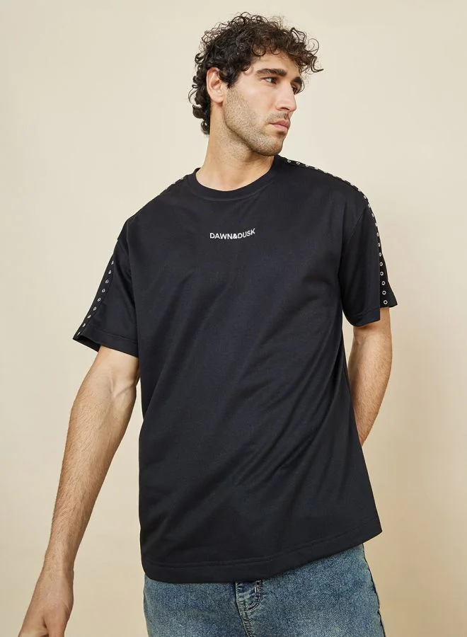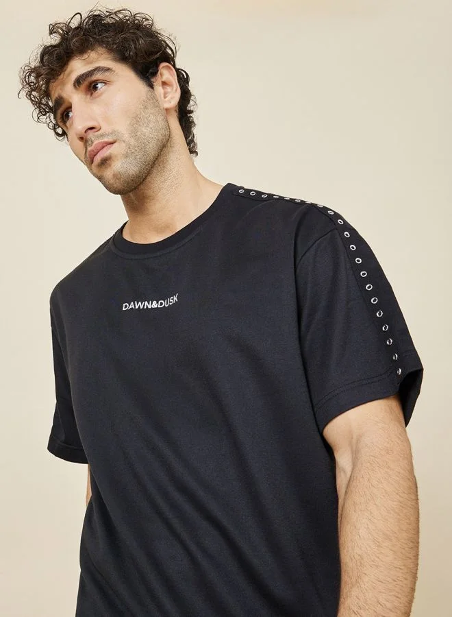 Shoulder Metal Rivet Detail Oversized T-Shirt