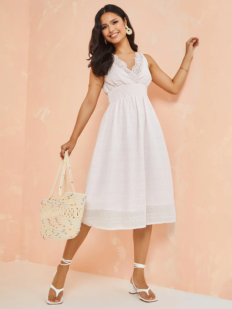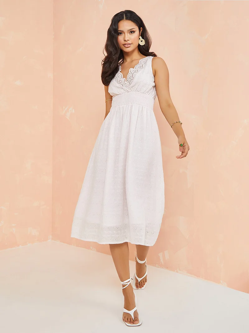 Styli Sleeveless Cotton Schiffli A-Line Midi Dress