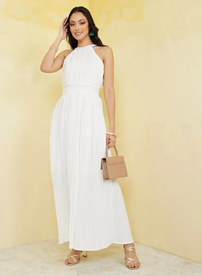 Styli Sleeveless Halter Neck A-Line Maxi Dress