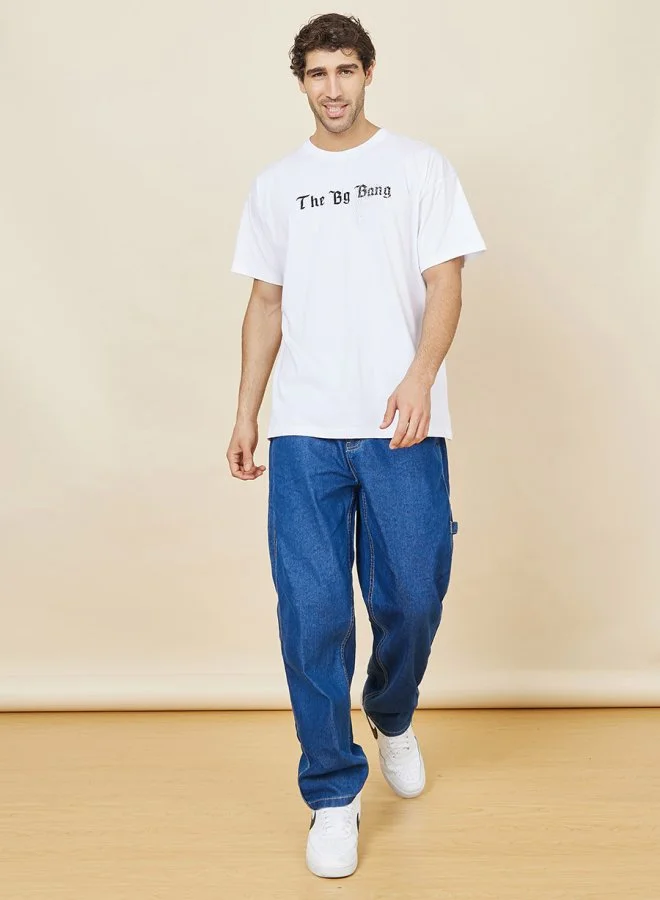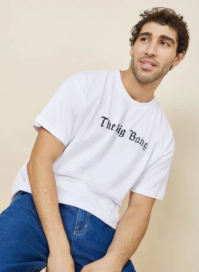 Styli Slogan Print Oversized T-Shirt with Faux Rhinestone Detail