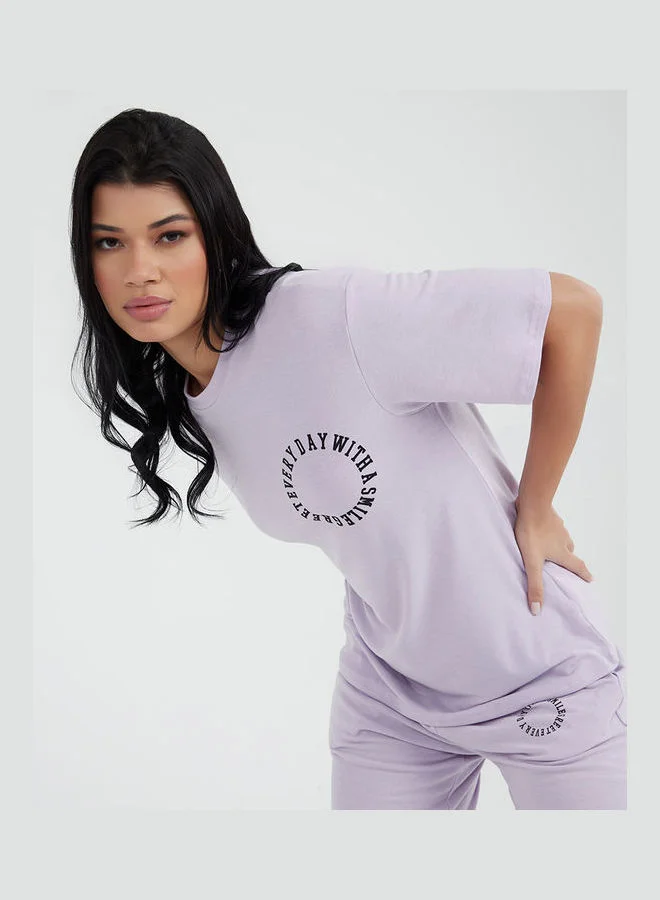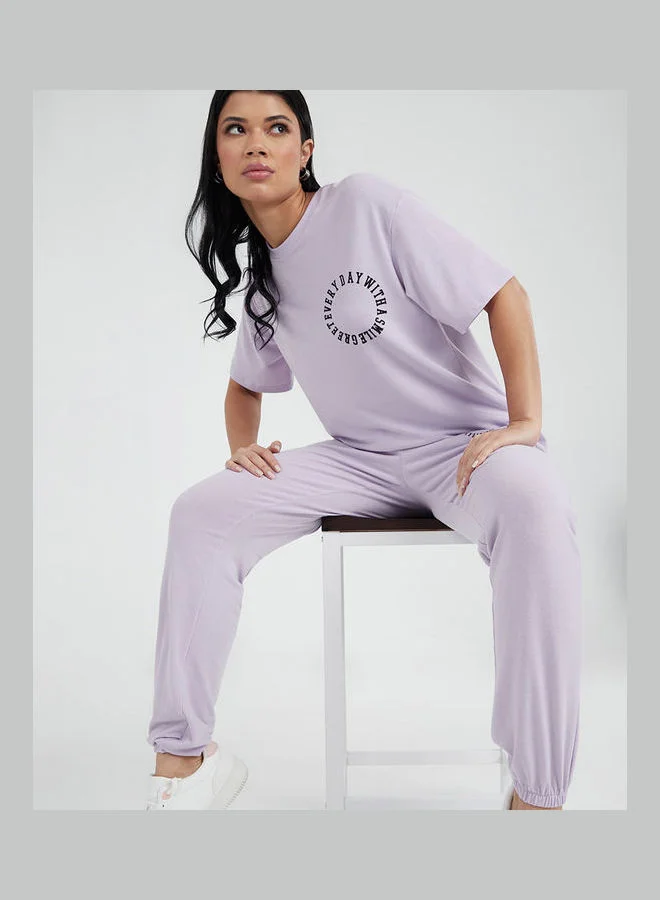 Styli Slogan Printed in Circle T-shirt and Jogger Lounge Set