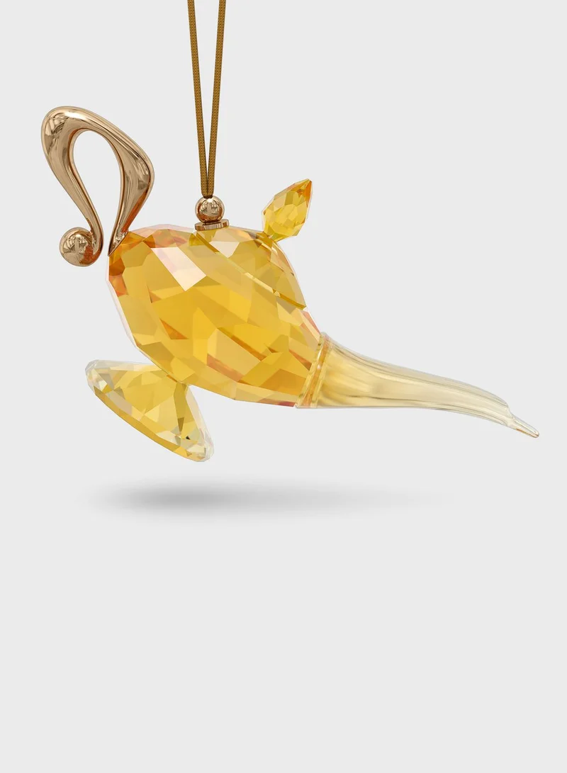 This detailed Magic Lamp ornament will delight any fans of Disney's Aladdin. A dazzling reminder of life's enchanting moments, it is crafted in 256 facets of yellow crystal with gold-tone metal decoration. The Magic Lamp hangs on a gold-tone cord. Decoration object. Not a toy. Not suitable for children under 15.