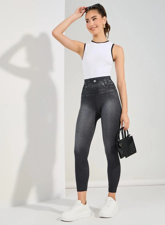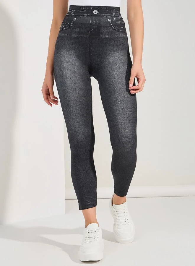 Take Two High Elastic Denim Look Printed Leggings