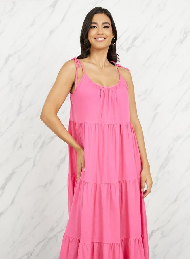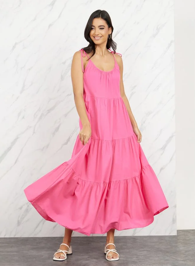 Tie Up Strappy Tiered Maxi Dress