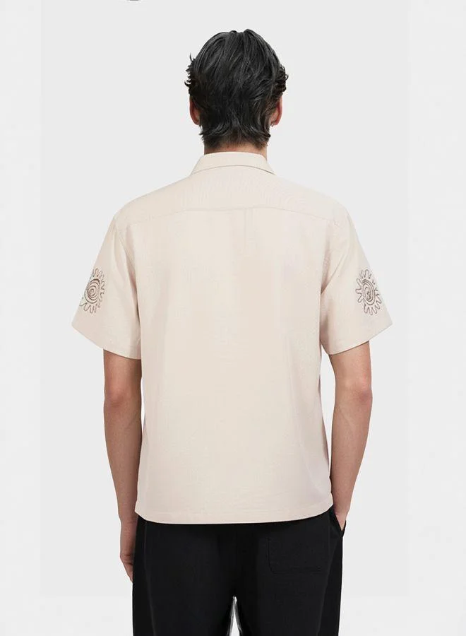 Men Relaxed Fit Embroided Round Neck Half Sleeves Shirt