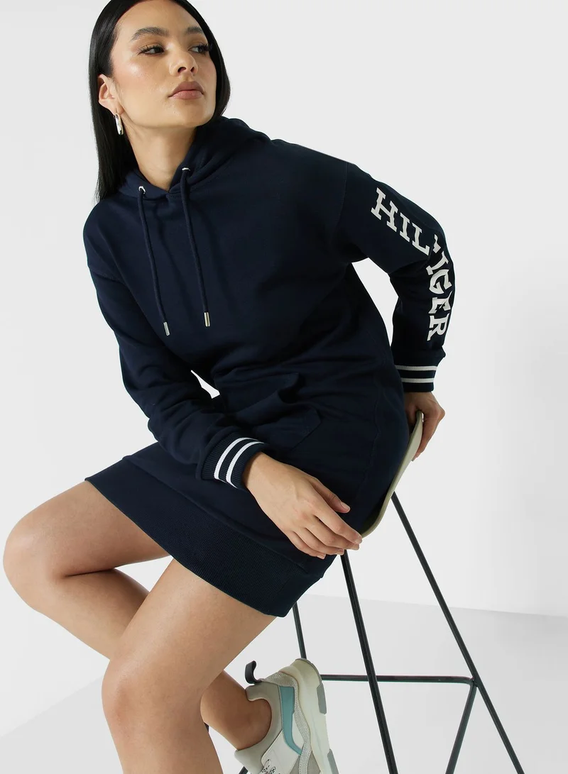 TOMMY HILFIGER Logo Sleeve Knitted Hoodie Dress