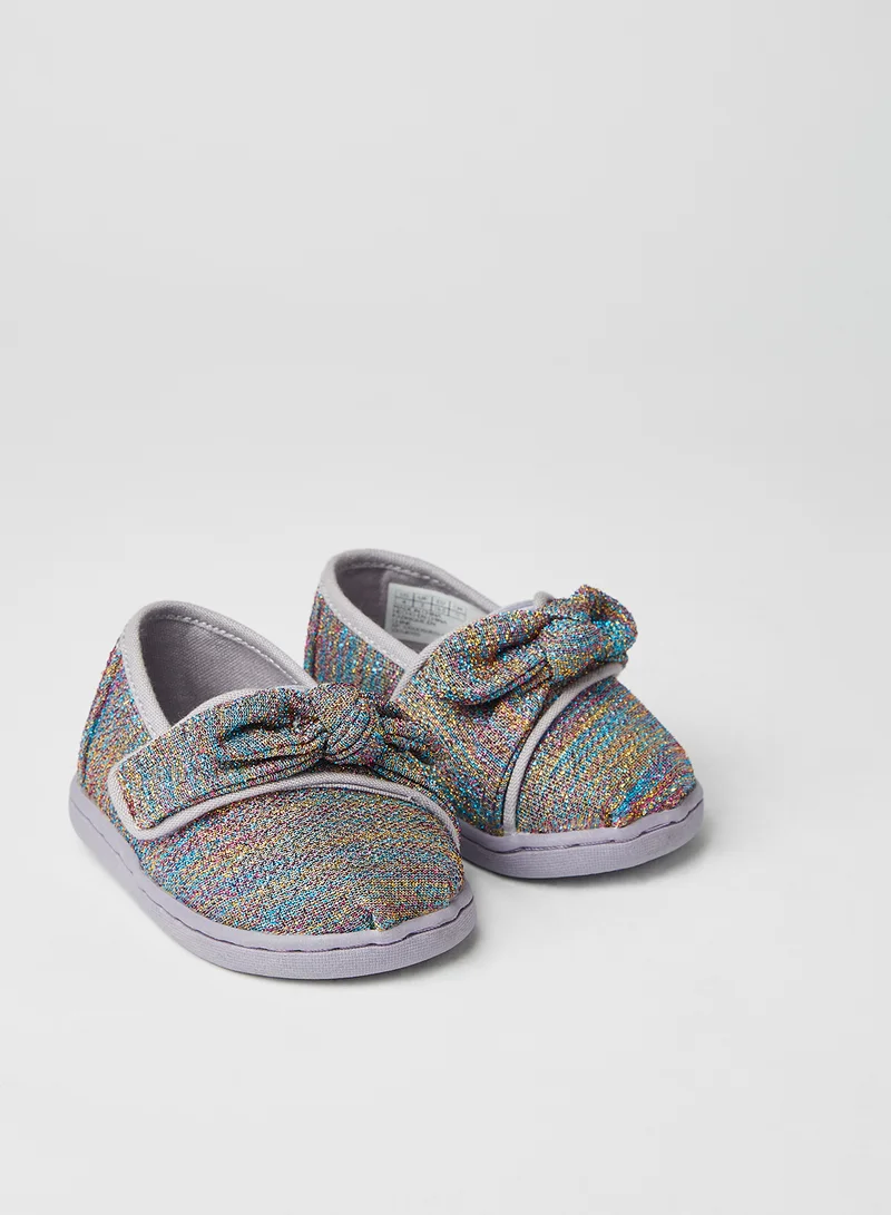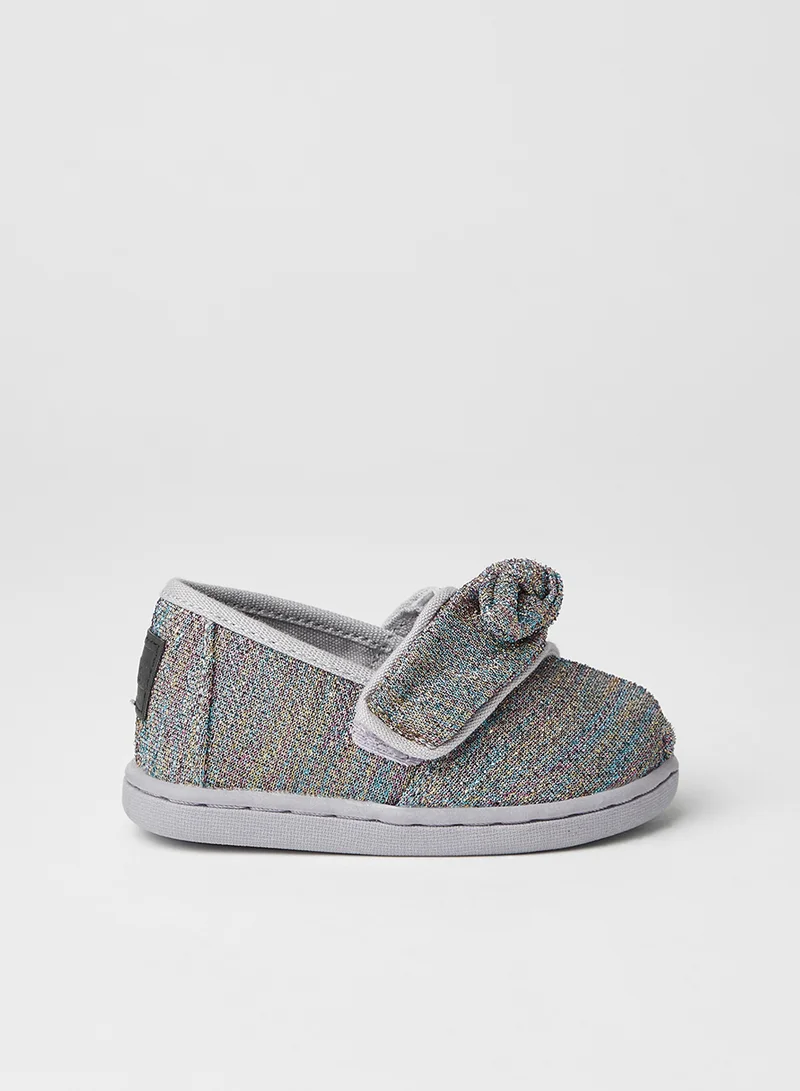 TOMS Girls Glimmer Woven Bow Velcro Slip-On Shoes Drizzle Grey