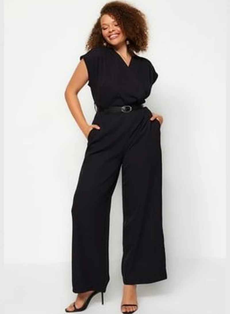 trendyol Black Woven Jumpsuit with Belt TBBSS23BG00004