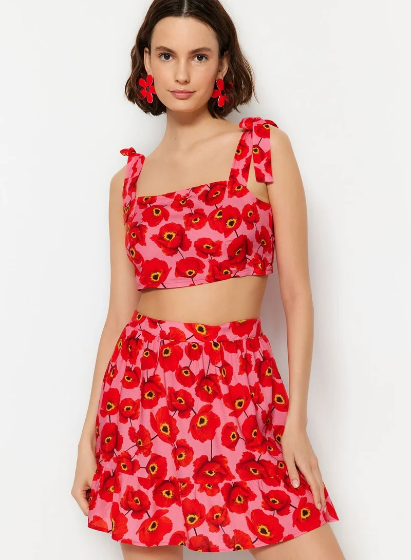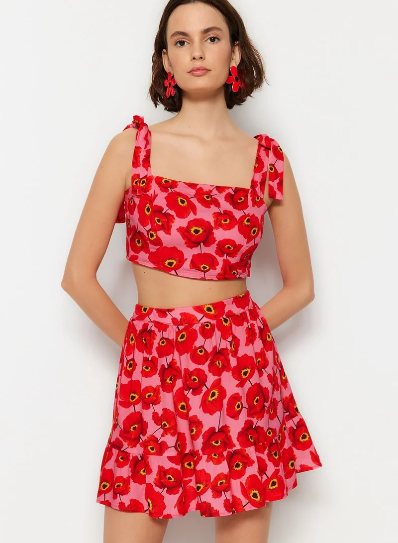 trendyol Floral Print Crop Top & Skirt Set