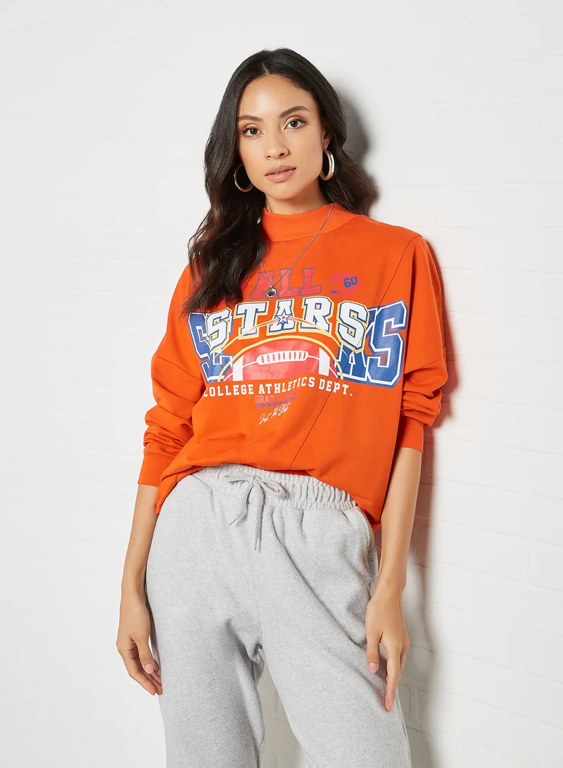 Graphic Print Sweatshirt Orange