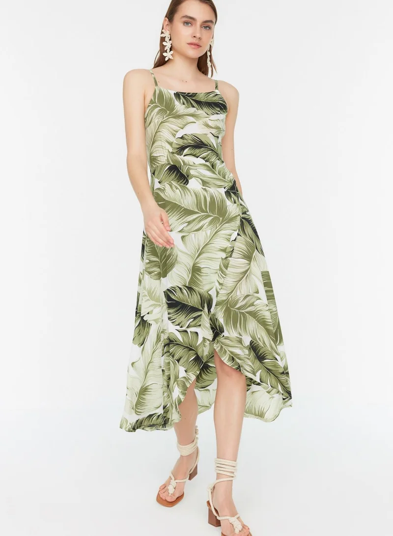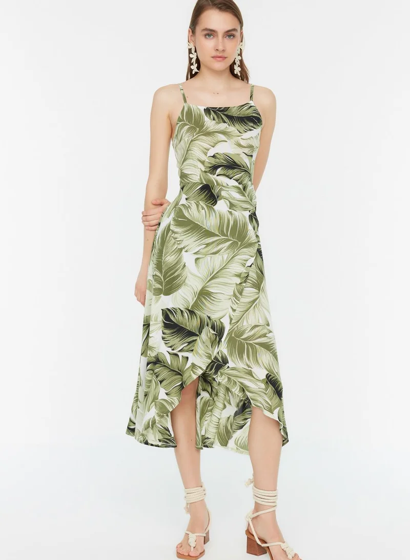 trendyol Strappy Printed Ruffle Detail Dress